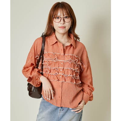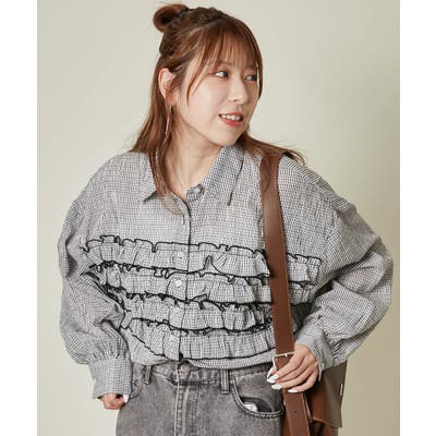 シックなチェック柄に動きのあるフリルを重ねた、大人カジュアルな主役シャツ。