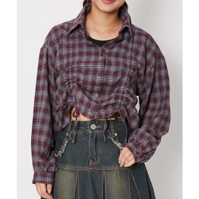 ベーシックなチェック柄に、前身頃の裾へ向かうドロストデザインをプラス。