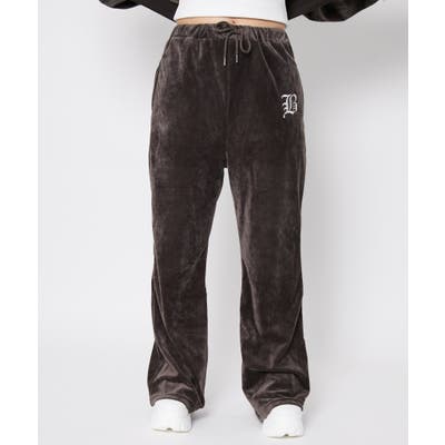 《ベロア×フレアシルエット》レディース ロゴ刺繍パンツ セットアップ対応 秋冬