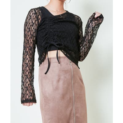 アシンメトリーなネックライン×ドロストで魅せる、こだわりディテールのレーストップス。