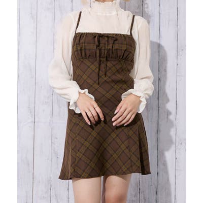 《起毛チェック柄》レディース キャミワンピ チュニック レイヤード 秋冬
