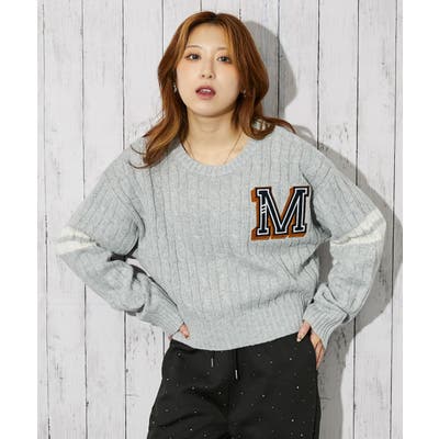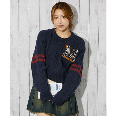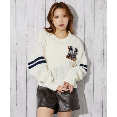 フロントに存在感のあるワッペンをあしらったカレッジ風ニット。