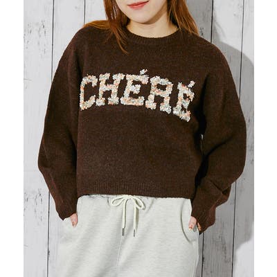 《ロゴ×ふわもこ質感》レディース ブラシヤーン 短丈ニット