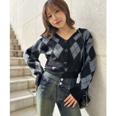 ふんわりとしたフェザーニットに、クラシックなアーガイル柄を落とし込んだ存在感のあるカーディガン。