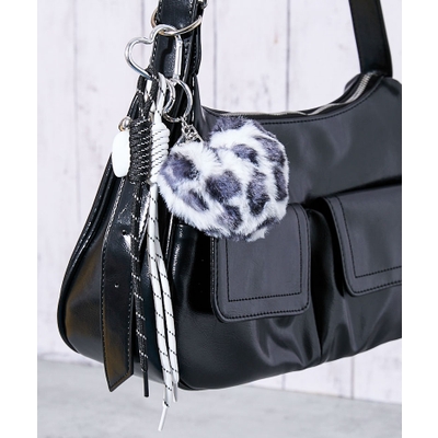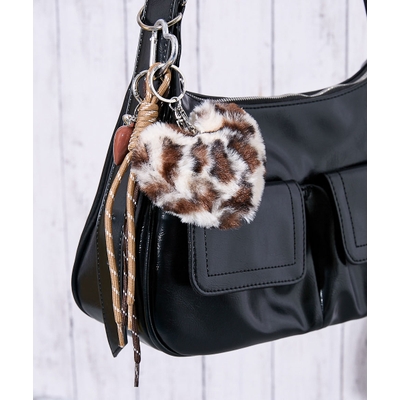 シーズンムードを盛り上げるフェイクファー素材のチャーム。アニマル風の柄がアクセントになり、バッグやキーリングに付けるだけでトレンド感ある印象に。