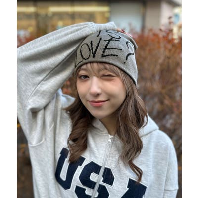 《英字LOVEメッセージ×存在感デザイン》ニットビーニー帽/秋冬