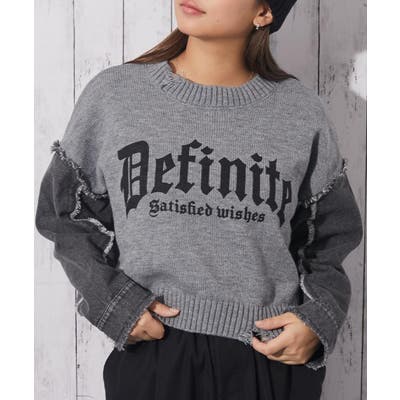 《ダメージ×デニムスリーブ》レディース ロゴニット クロップド丈 秋冬