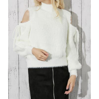《肩あき×フェザーニット》レディース 長袖トップス ふわもこ フェミニン 秋冬