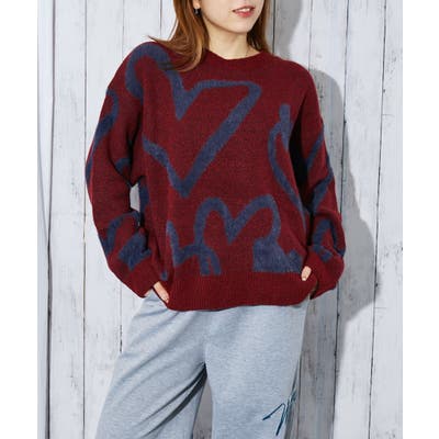 大きく描かれたハートラインが目を惹く、キャッチーなデザインニット。
