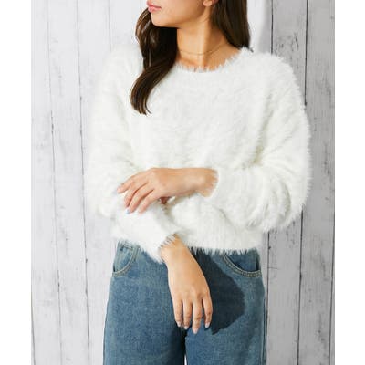 《フェザー×ショート丈》レディース ニットプルオーバー 長袖