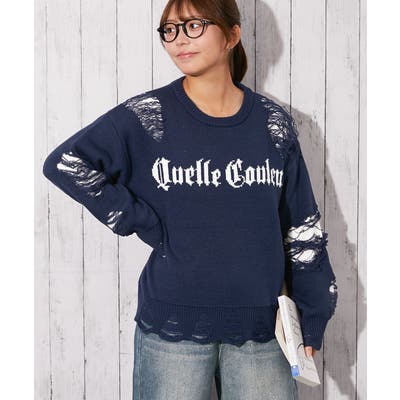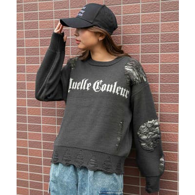 《ダメージ×ロゴ映え》レディース ニットトップス デザインカット 秋冬