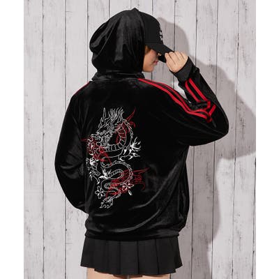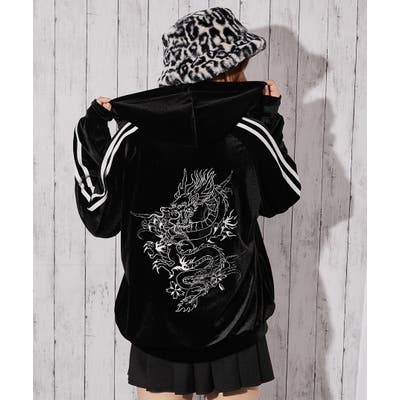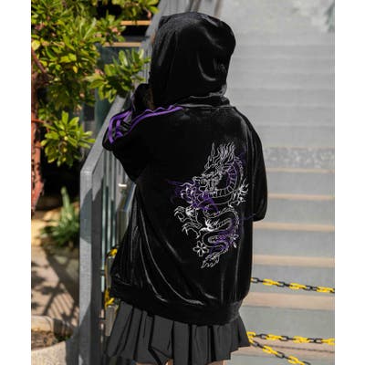 《ベロア×ドラゴン刺繍》サイドラインジップパーカー