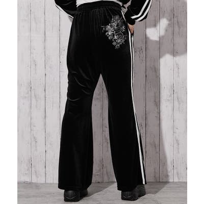 《ベロア×ドラゴン刺繍》サイドラインストレートパンツ