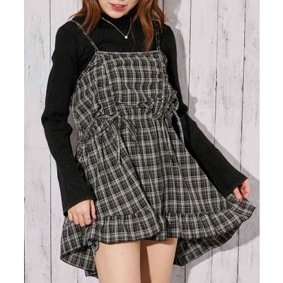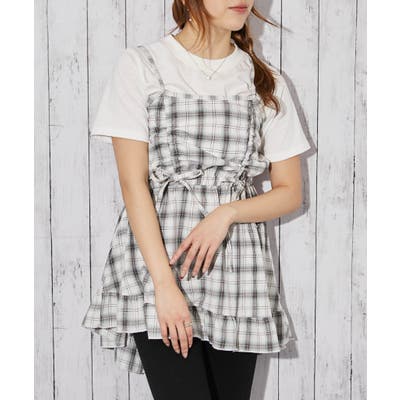 《チェック柄で季節感プラス ドロスト仕様キャミソール》