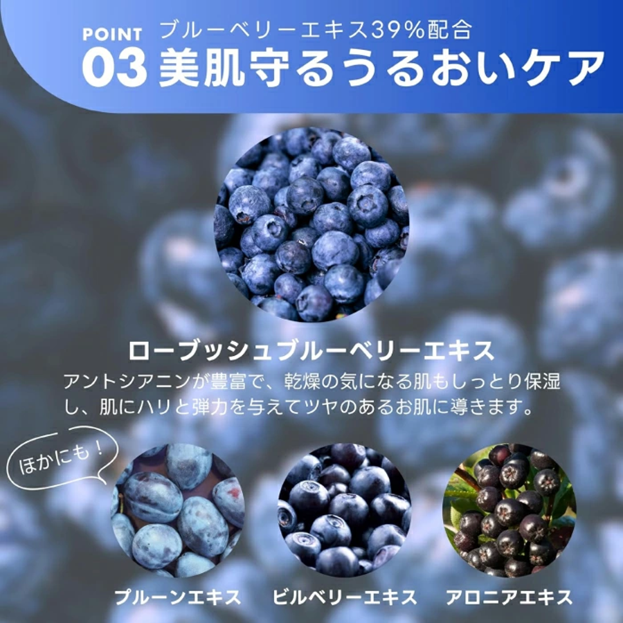【アントシアニンたっぷり】精製水の代わりローブッシュブルーベリーエキスを39%配合