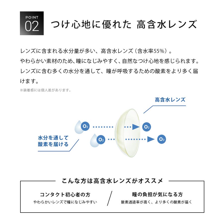 お値段も安く目が乾燥せず着けやすいのでいいと思います。さん (40代 / 女性 )購入アイテム:サイズ -2.75 - つけやすいし乾かない