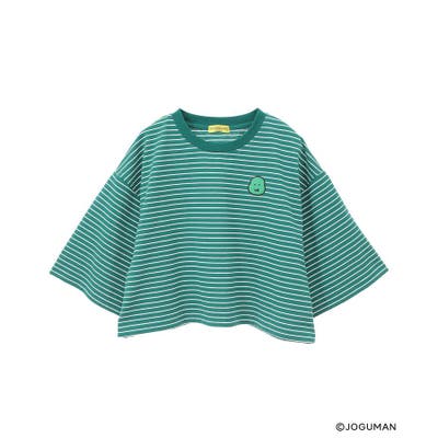 人気キャラクター「JOGUMAN」の刺繍がポイントのオリジナルTシャツ。 ゆるっとしたワイドシルエットに短めの丈感がトレンドライクな一枚です。やさしい色味のサックスブルーにグリーンとネイビーを加えた3色展開。カジュアルなボーダー柄が着映えを叶え、コーディネートにアクセントを効かせてくれます。透け感[なし]