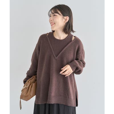 フェイクレイヤードVネックニットプルオーバー