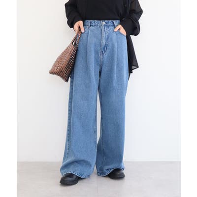 ヴィンテージ感あるデニム素材で飽きのこないデニムパンツ。ワイドなストレートシルエットにウエストタックを施した立体フォルムが特徴的なデザインです。バックゴム仕様で着脱しやすく快適な穿き心地も嬉しいポイント。深い股上のハイライズタイプで短丈トップスと合わせた旬な着こなしも上手に決まります。透け感[なし]