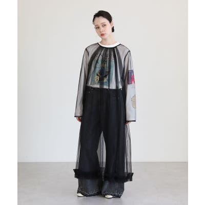 トレンドのシアーなチュール素材で仕立てたワンピース。歩くたびに揺れる裾フリルが女性らしさとモード感を演出します。ゆとりのあるサイズ感で着心地良く、インナーを重ねてももたつきにくいのもポイント。いつものスタイリングに重ねるだけでブラッシュアップした着こなしを楽しめるおすすめのプラスワンアイテムです。透け感[ややあり]
