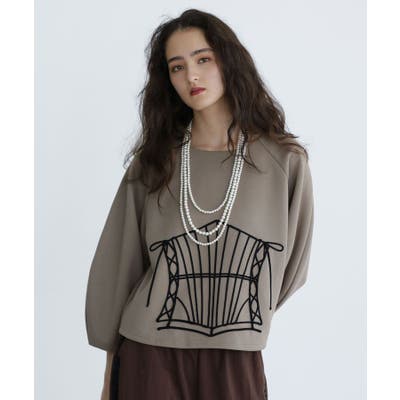 表面感の綺麗な素材で上品に仕立てたプルオーバー。前後に細コードで描いたコルセット風モチーフを施し、カジュアルになりすぎず女性らしい着こなしにもマッチします。ふんわりとした袖がニュアンスのあるシルエットを演出。合わせるボトムを選ばず、デイリーに活躍するおすすめのアイテムです。透け感[なし]