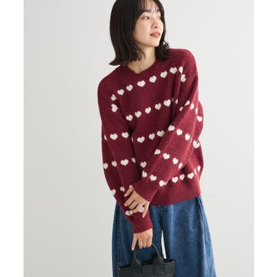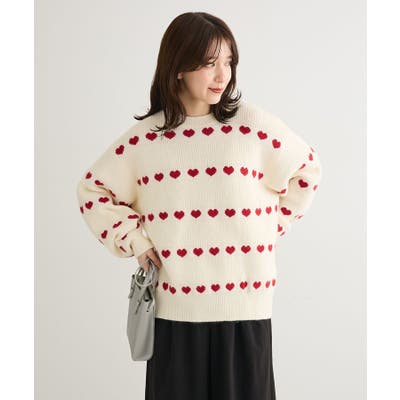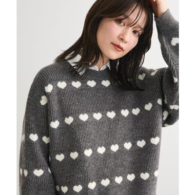 フェミニンなハートモチーフが目を惹くジャガードニットプルオーバー。肩の落ちたリラックスシルエットが程よくカジュアルさを加え、一枚でサマ見えするデザインが魅力です。インナーにシャツを合わせたレイヤードスタイルもおすすめ。コートインでも華やかな存在感があり、デイリーからちょっとしたお出かけシーンにも活躍するおすすめのアイテムです。透け感[なし]