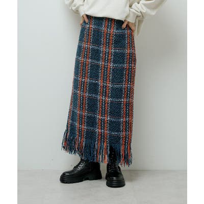秋冬スタイルに暖かみのある表情をプラスしてくれるチェック柄スカート。大胆な配置と配色、存在感を増すループヤーンの凹凸感ある仕立てが魅力的なデザインです。ゆとりあるIラインシルエットで長さのある裾のフリンジがこなれ感あるポイント。ブーツスタイルにも相性が良く、コーディネートの主役として活躍してくれるおすすめのアイテムです。