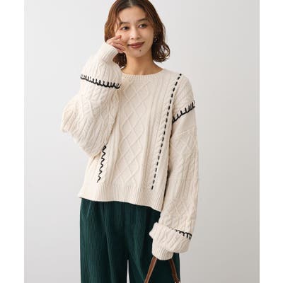 繊細にデザインされた切り替えケーブル模様が特別感あるニットプルオーバー。編みディテールに加えてハンドステッチ風の配色を加えた、こなれ感あるデザインが魅力です。肩を落としたボリュームのあるドロップショルダーにトレンドの短丈フォルムが旬テイスト。どんなボトムともバランス良く合わせていただける今季おすすめのアイテムです。透け感[なし]