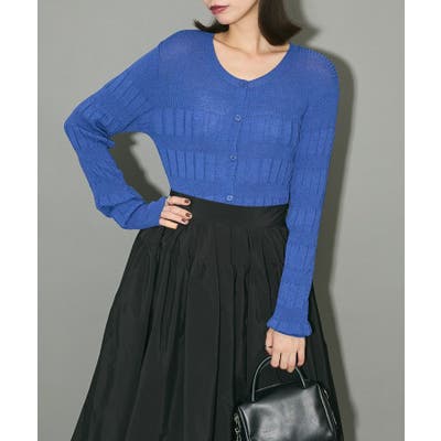 スタイリングのアクセントになるニットカーディガン。すとんとした落ち感でピッチの細いリブが肌触りの良い着心地です。ふっくらとしたプリーツ加工にシャーリングもプラスし全体的に立体感のあるシルエットが目を惹くデザイン。裾に施されたさりげないフリルがフェミニンなポイントです。カーディガンとしてはもちろん、ボトムにインしてメイントップスにもおすすめ。透け感[なし]生地の厚さ[薄手]光沢感[なし]伸縮性[あり]裏地[なし]ポケット[なし]※モデル着用画像は、光の当たり具合で色味が違って見える場合がございます。※お使いのモニター環境によって商品の色味が違って見える場合がございます。