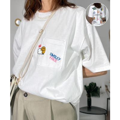 ・【刺繍】:ポケット付きTシャツにワンポイントの刺繍 。