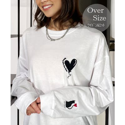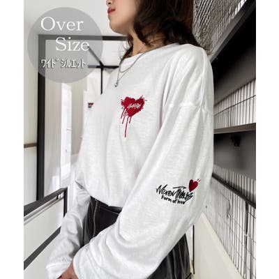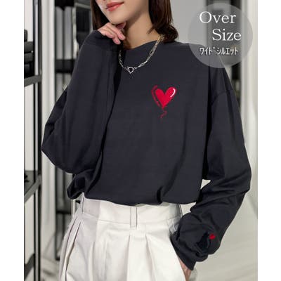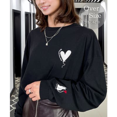 ハート 2か所刺繍 長袖Tシャツ 白 黒 ロンT
