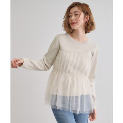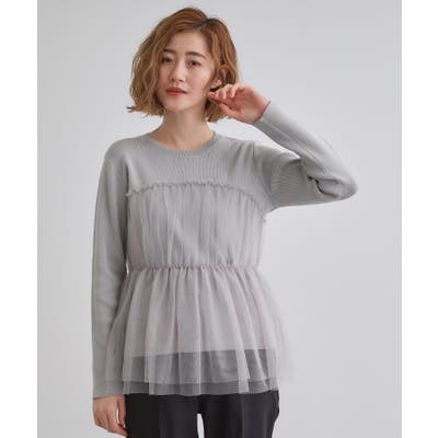 ほんのり透ける軽やかなチュールがニットの身頃部分に切り替えられたドッキングプルオーバーです。