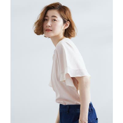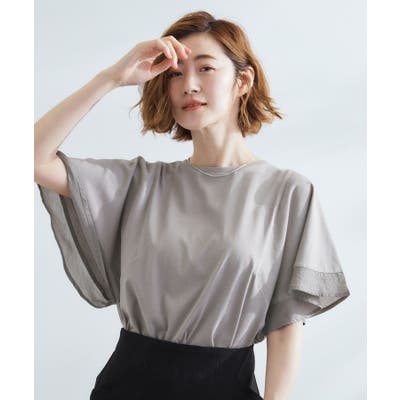 フレアスリーブと袖口のシアー素材が華やかなデザインカットソー。