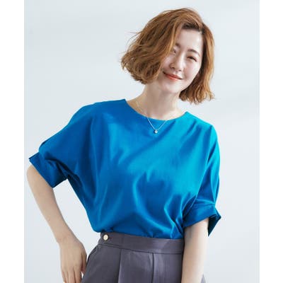 ドルマンスリーブデザインで体のラインから程よく離れる、夏に涼しげに着用いただける1枚です。