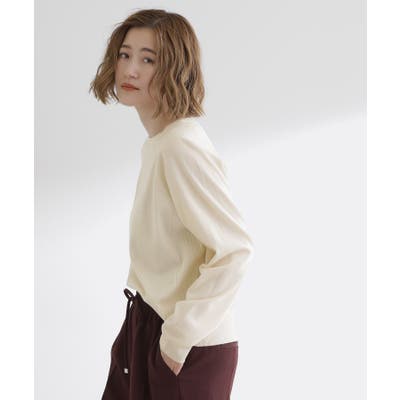 天竺編みで、オーバーサイズながら体に馴染んでやわらかな印象に仕上がっています。