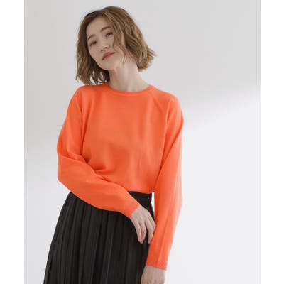 ラグランスリーブと脇に入れたデザインラインが、シンプルな中にさりげないアクセントを加えたニットです。