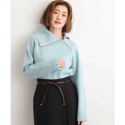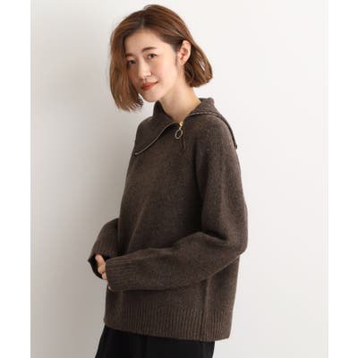 ジップの開閉やインナーのレイヤードで印象を変えられるので、1枚でスタイルの幅を広げられるニットです。