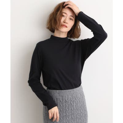 コットンの優しいタッチと高い伸縮性が特徴のハイネックプルオーバー。
