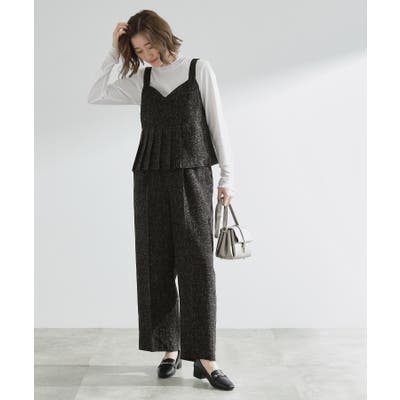 張り感の少ないツイード素材を使用しているので、ワイドパンツのシルエットも横に広がらず、すっきり縦見えする美シルエットになっています。
