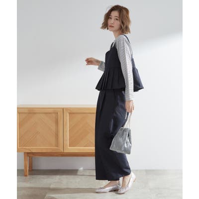 ビスチェ単体だけでもトレンド感ある着こなしが楽しめますが、セットアップで着用することでサロペット風の着こなしが楽しめるのがポイントです。