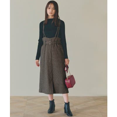 ナローなダブルストラップが華奢でフェミニンな印象のサス付きスカートです。