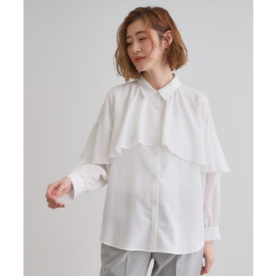 レギュラーカラーの端正な雰囲気に、胸元から袖にかけてラインがつながるケープ風フリルがアクセント。