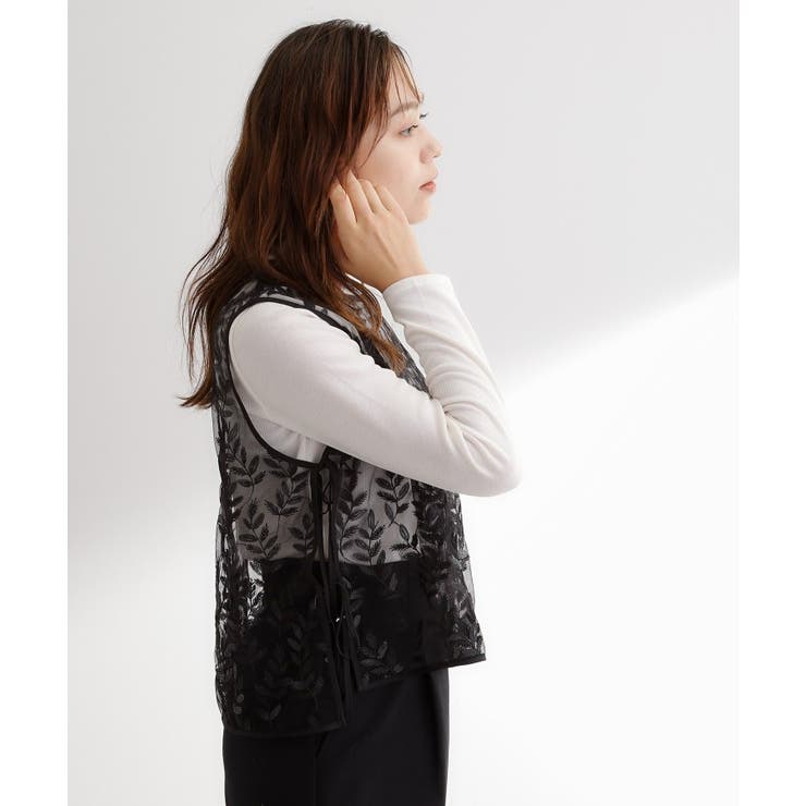 ベストはチュールに繊細なスパンコール刺繍を施した、ブラウスは滑らかな落ち感のあるジョーゼット素材を使用しています。
