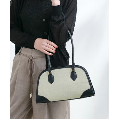 エルガリー素材と合成皮革の組み合わせが上品なボストンバッグ。