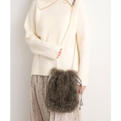 柔らかく毛足の長いふわふわのプードルフェイクファーの巾着ショルダー。