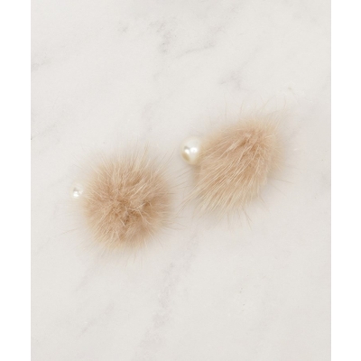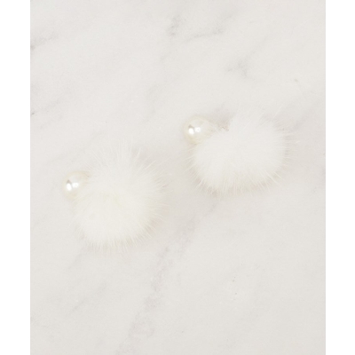 ふんわりファーと上品なフェイクパールを組み合わせたピアス。