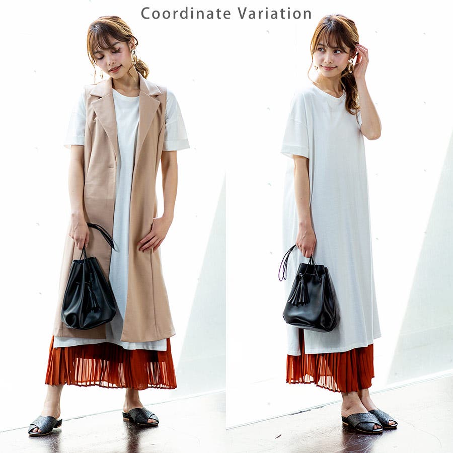 サイドのスリットはボトムとのレイヤードコーデに最適。