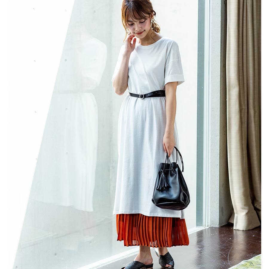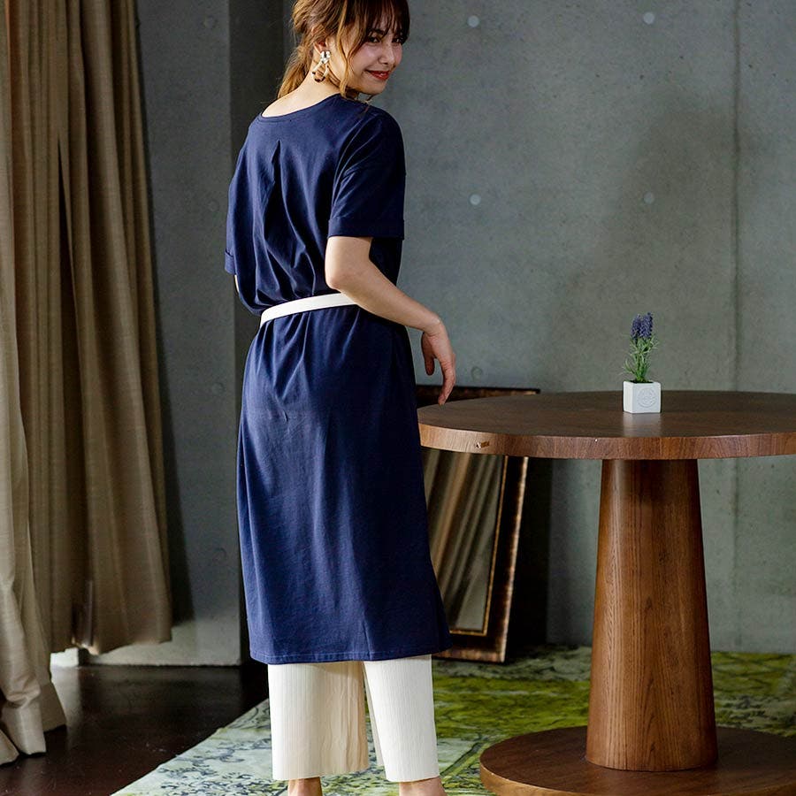 着回し力の高めな大人カジュアル バックタックコットンTシャツワンピース