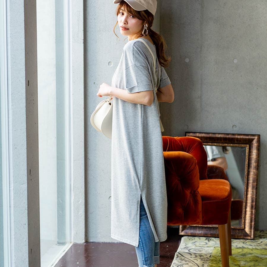 SS ss 春夏 春 春服 春色 夏 夏服 プチプラ お洒落 おしゃれ オシャレ かわいい カワイイ 大人可愛い 大人かわいい大人カワイイ 大人カジュアル 大人コーデ デート デート服 合コン 女子会 レディース カジュアル ジュニア ティーン 10代 20代30代 ママ ママコーデ タック入り サイドスリット 半袖 折り返し シンプル スリット ゆったり 大きいサイズ M L LLらくちん 部屋着 ルームウェア すとん ブラック ホワイト グレー 黒 白 カーキ ネイビー 緑 青