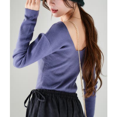 カシミヤタッチバックオープンニット バックオープン トップス